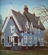 Harry Devlin’s idea for this colorful young adult book grew from his attempts to distract and entertain his seven children on car trips in their station wagon from the Devlin home in New Jersey to a vacation spot in the Adirondacks. He pointed out “Mansard roofs,” or “Doric columns,” “Palladian windows,” “turrets,” and “finials.” A guessing game ensued and the children soon took pride in identifying “Federal,” “Victorian,” “Neo-Jacobean,” or “Dutch Colonial,” as well as myriad other styles.