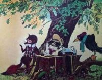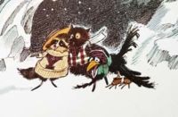 Every afternoon a fox, raccoon, and crow meet to play dominoes and tell fibs. The call themselves the "Knobby Boys" just because they like the name.